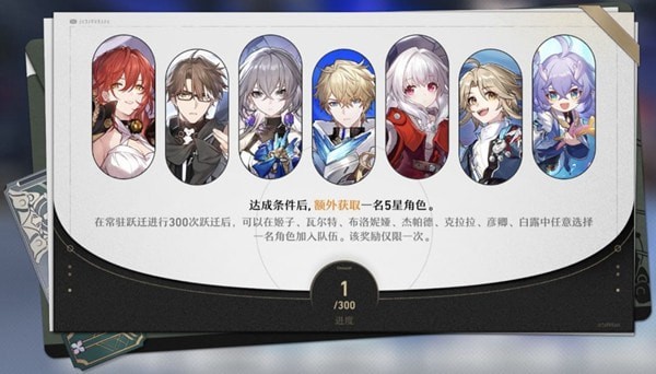 常驻池,300抽后可以自由选择下图所示的常驻角色之一。