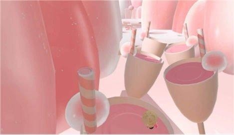 穿过楼梯,我们来到蛋糕前。注意边缘就可以起飞了。