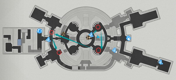 最佳路线:从结界阿特拉斯阵列的传送点走下楼梯,逆时针清除敌人。