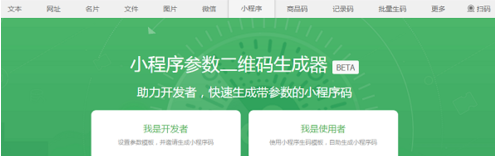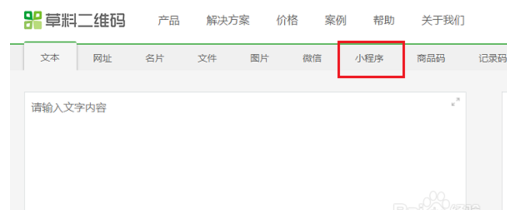 第二步之后,默认是生成一个普通的文字二维码,点击右边的小程序。
