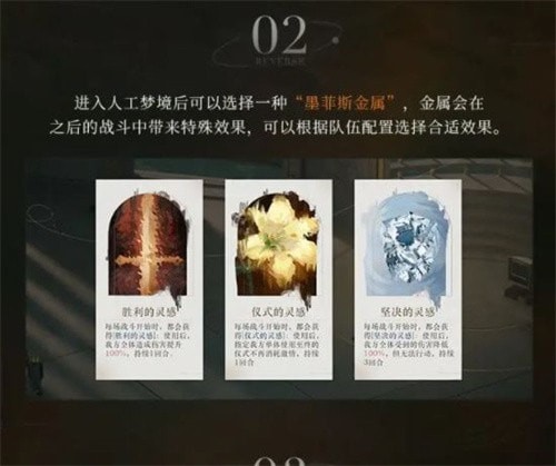 1.进入人造梦境后可以选择一个& ldquoRiffez metal & rdquo金属会在后期战斗中带来特效。可以根据团队配置选择合适的效果。