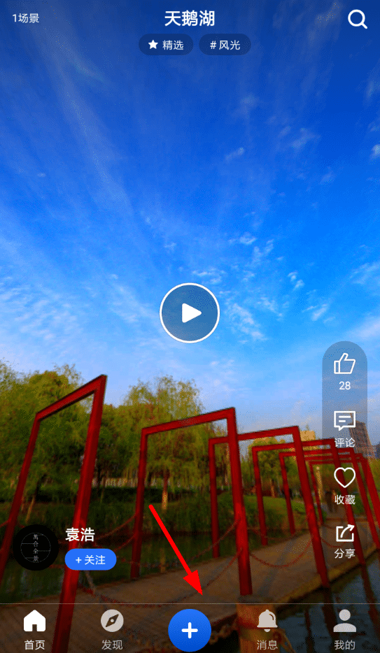 1、简单来说,如果要在720云中添加音乐,用户需要点击首页底部的“+”按钮,打开视频编辑发布页面进行设置。