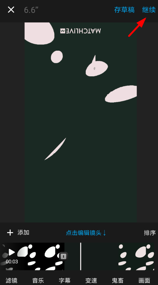 2、视频素材导入成功后,我们会进入视频编辑页面,编辑完成后,我们需要点击右上角的“继续”按钮。