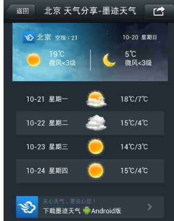 要将天气分享给微信好友或者发送给好友,需要两个安卓客户端软件:微信和墨迹天气。我相信你的手机里已经装了微信。