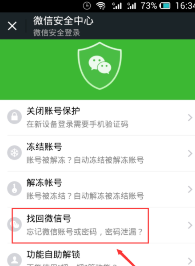 选择“找回微信号”或“重置密码”。