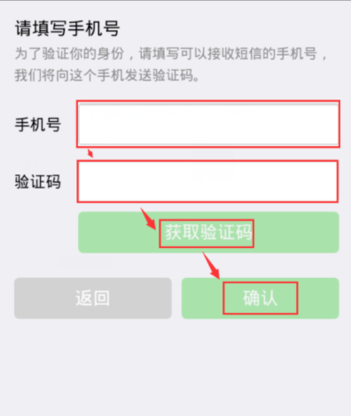 按照提示流程操作“输入手机号,验证手机号”找回微信号密码。