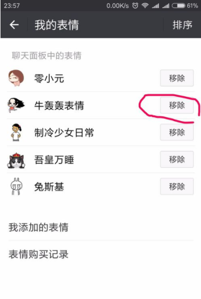 在我的表情里,显示的是你下载的所有表情。选择要删除的表达式,单击表达式,然后单击末尾的“删除”选项。