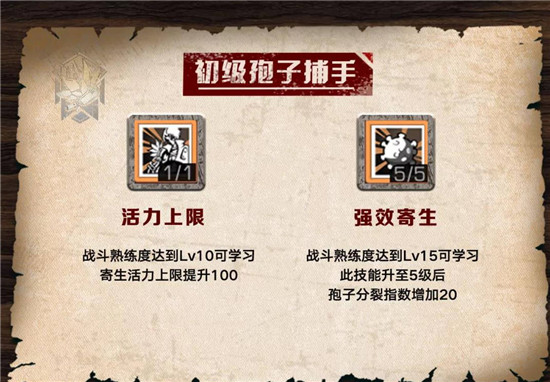 初级孢子捕手有两个技能,分别是生命力上限和强力寄生。