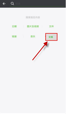 2)然后进入“查找聊天内容”一栏,最后点击“交易”查看自己和这个朋友的交易消息~(如下图)。