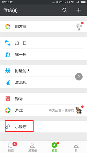 3.点击底部的【小程序】进入小程序界面。步骤截图如下: