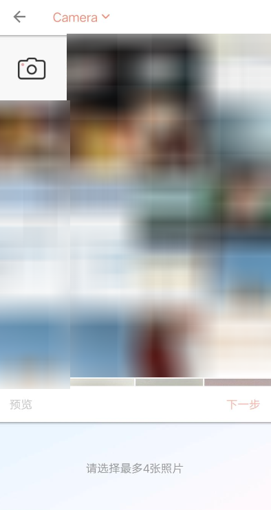 2、小编以海报为例,点击它并选择需要拼贴的照片,可以点击如图所示的相机进入相册选择,然后点击下一步