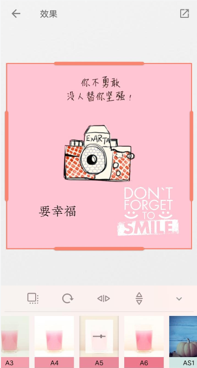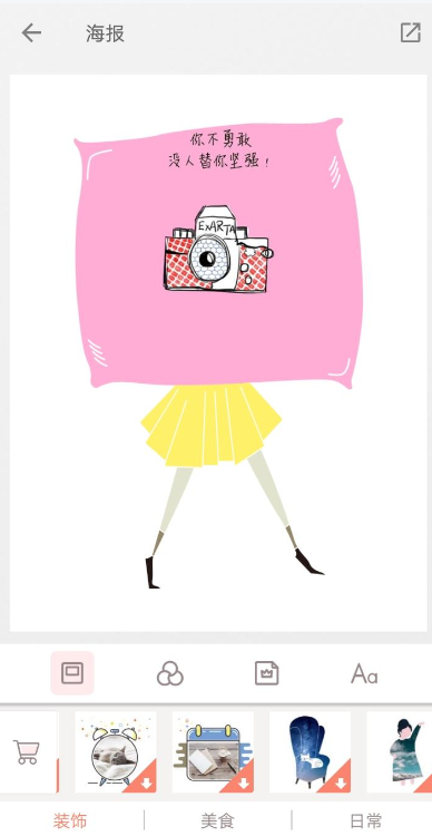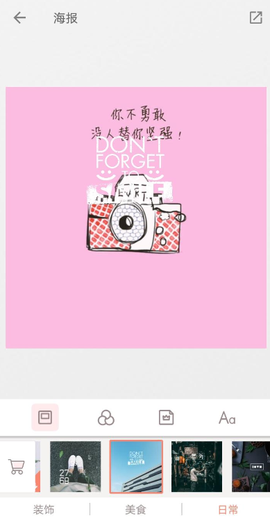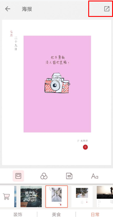 3.选择后会有装饰、美食、日常生活三大特效。如果您没有经验,请一一尝试。点击装饰,向右滑动选择海报