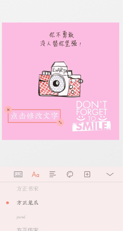 5. 字体和大小均可选择。点击图中红色框进行打字,拖动深色栏右下角即可调整文字大小。如果不想使用,请点击右上角的
