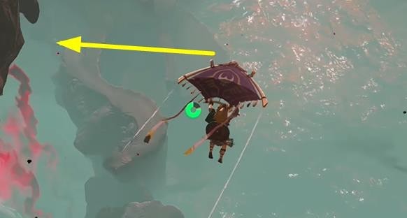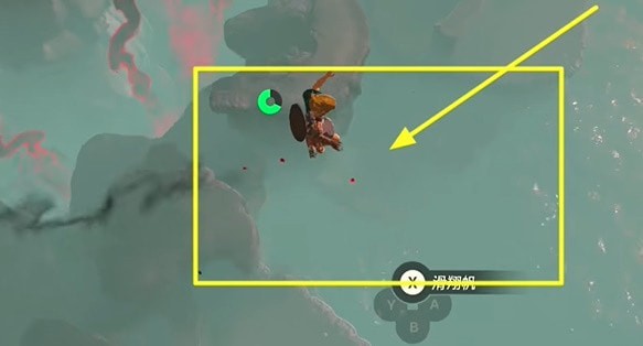 3.飞到下图位置后收起滑翔伞,到达底部后继续向左飞。