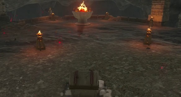 5.当它被点燃时,它会触发机制,然后我们将宝箱从地上向上移动,并打开宝箱以获得赫利亚盾。