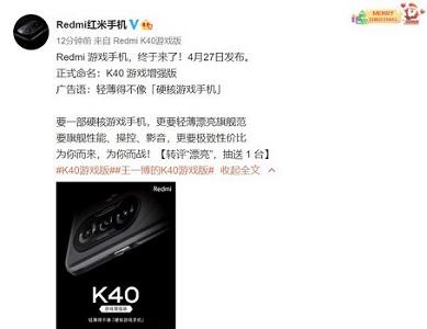 4月20日,Redmi官方宣布,新手机Redmi K40游戏增强版将于4月27日正式发布。口号“不像硬核游戏手机那么薄”,口号是“要突破底线”。游戏手机价格线”,很难不让人感兴趣,我们一起来了解一下。