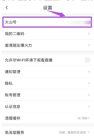 4.然后在打开的“设置”页面中点击“火山”选项;您也可以点击“我的”页面上的“编辑”按钮,也可以进入“编辑个人资料”页面。