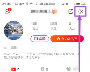 3. 在打开的“我的”页面上,单击右上角的“齿轮”图标。