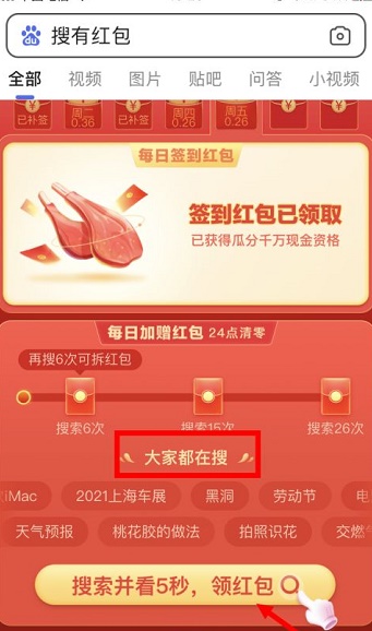 搜游红包是百度为庆祝春节而推出的一项特别活动。本次活动为用户提供了多种赚钱方式。您可以完成不同的任务来赚取收入,收入可以直接提取。到您的帐户,非常方便快捷。