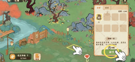 1.点击花园中的空地,并选择所需的花卉种子。种花后,可以通过护理花来减少花成熟的时间。
