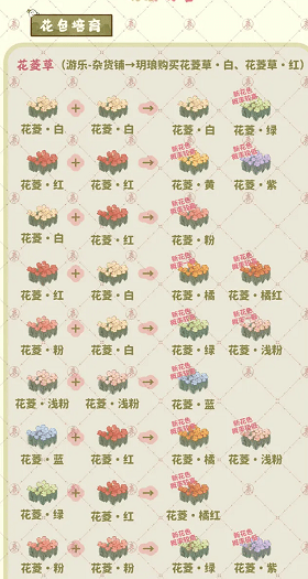 2.只有种植收获的花,才能栽培。相同颜色的花或者不同颜色的花都有培育出新花的概率,培育出新花的概率是随机的。