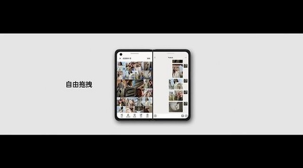9、发布会还显示,作为一款折叠屏手机,它可以通过拖拽的方式在两个屏幕之间自由交互。