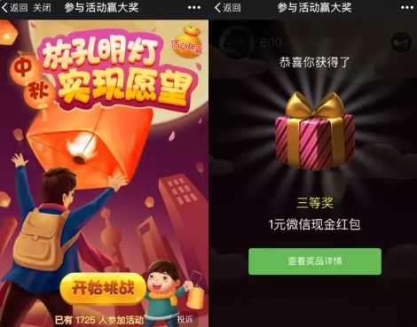 微信放孔明灯领红包怎么玩 微信放孔明灯领红包活动介绍 9158APP 2023-08-15 14:43:47 0 是微信最新的玩法。很多朋友还不知道这个游戏怎么玩,想知道就让边肖详细告诉你,想知道就让边肖详细告诉你。 微信放孔明灯笼领红包活动介绍 活动主题: 让灯笼飞起来赢微信红包。 活动内容: 参与中秋灯会,有机会赢取1-10元微信充现金红包。 参与方式: 本文地址: 版权声明:本文内容由互联网用户自发贡献,该文观点仅代表作者本人。本站仅提供信息存储空间服务,不拥有所有权,不承担相关法律责任。如发现本站有涉嫌抄袭侵权/违法违规的内容, 请联系我们,一经查实,本站将立刻删除;如已特别标注为本站原创文章的,转载时请以链接形式注明文章出处,谢谢!