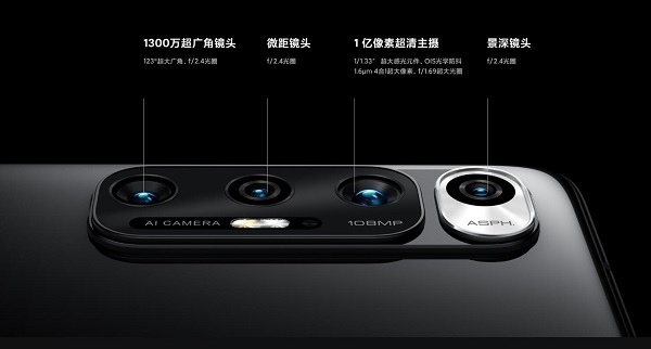 3、相机方面,小米10S采用后置四摄镜头,分别是100像素超清主摄、13像素超广角镜头、2像素景深镜头、2 - 百万像素微距镜头。