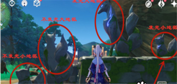 然后在场景中寻找【蓝光小地狐雕像】。狐狸雕像可以用纪念镜拍照。