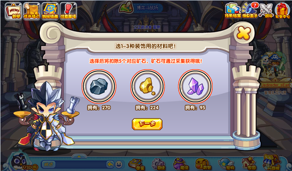 游戏战场中共有三块玉石,小洛克们需要选择不同的矿石和宠物来帮助雕刻。每天会有七次雕刻机会,雕刻过程需要两分钟: