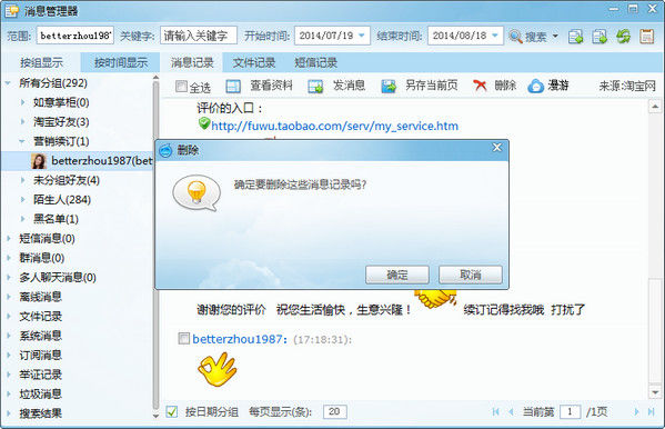 看完上面的解释:阿里旺旺中将聊天记录删掉的具体操作步骤,朋友们,赶紧来尝试一下吧!