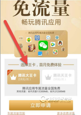 打开腾讯王卡,点击一键直接申请。