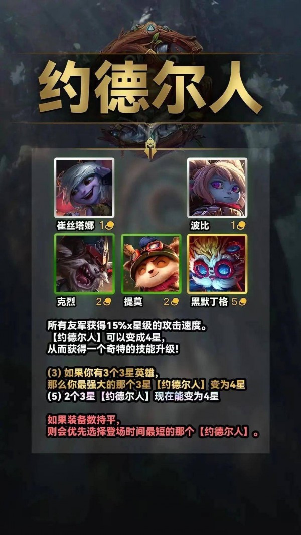 (3)如果有三个三星英雄。然后最厉害的3星【约德尔人】变成了4星。