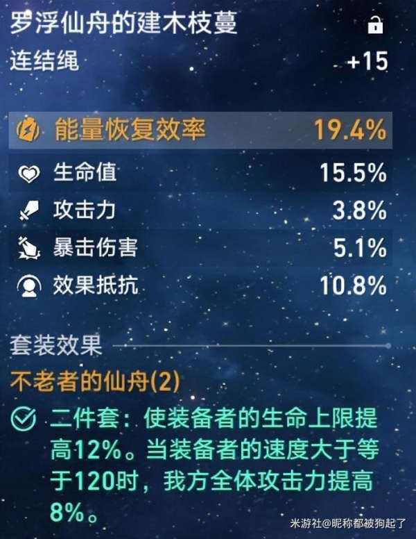 这个套装是辅助标配,可以叠加老仙船的两件套,奶和辅助都可以带。被动要求不高,120速即可触发(奶不易触发)。额外的健康为脆皮提供容错,奶需要生命增加回血。