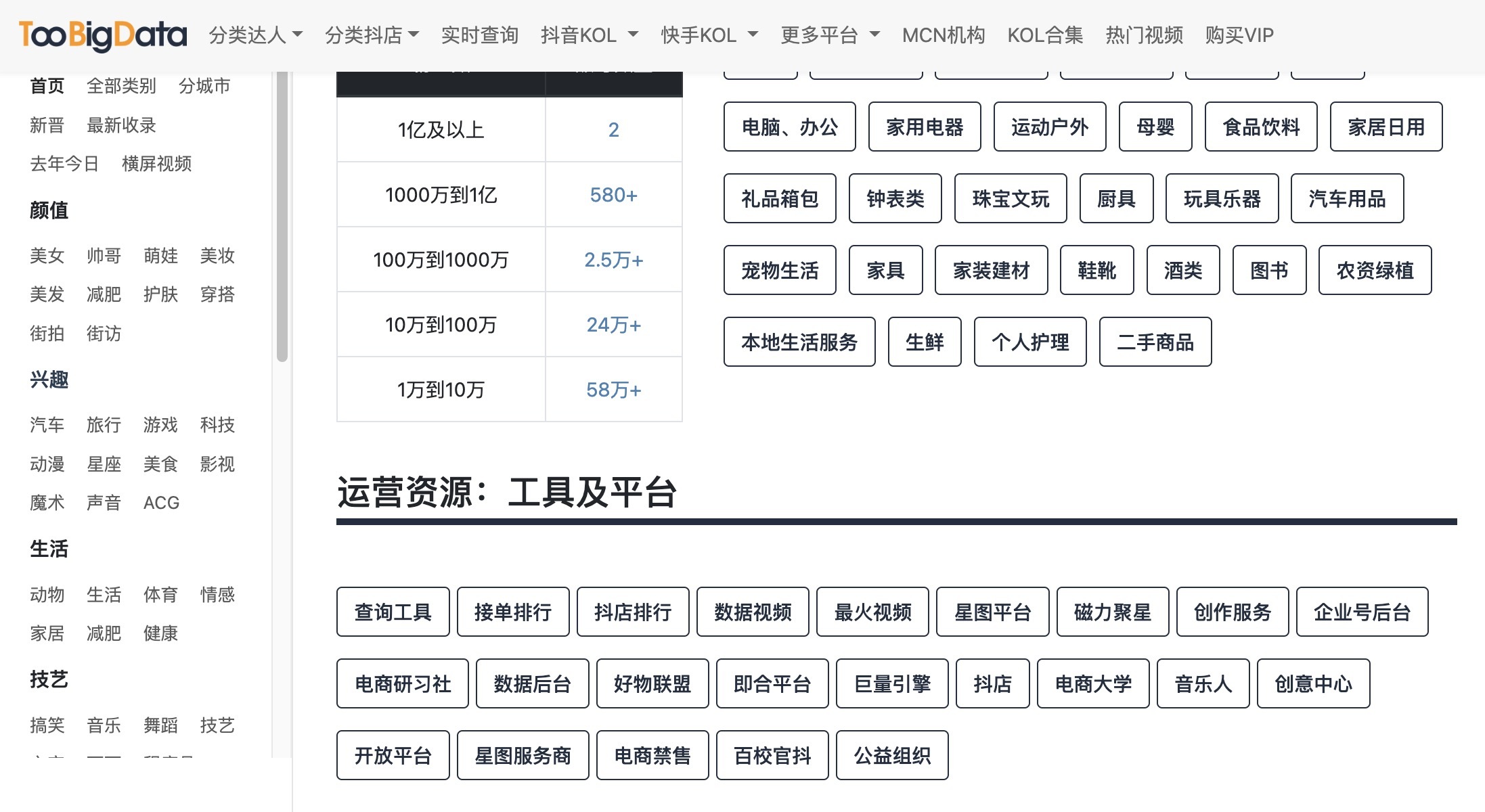 Toobigdata:汇集了Tik Tok各大实用数据功能,包括最新行业资讯、Tik Tok官方平台链接、热门产品、热门数据、账户诊断等实用工具。大部分数据可以免费查看。