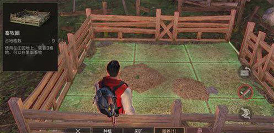 如果我们想要养猪,我们首先需要制作一个畜栏。牲畜圈需要有9格的空间才能放下。需要制作这个牲畜圈。它是在建筑材料加工台上制作的。做好后,放在九方的荒地上就可以了,然后我们就可以养猪了。