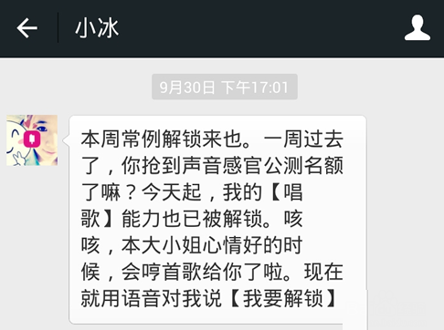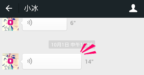 3.微信萧冰开启声音感官技能后,当你用语音说话时,萧冰会回复一条语音消息。
