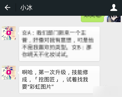 4.如何使用微信萧冰的技巧?单击技能图标进入特定技能聊天窗口,并输入技能名称。执行技巧可以伴有其他查询口号,如“我想让你帮我找到彩虹图片”的形式