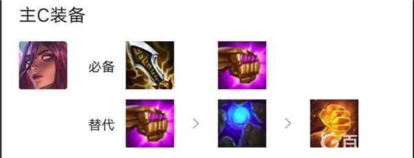 3.主C的必备装备是无尽和珠光护手,备选装备是珠光护手,蓝獾和正义之手。