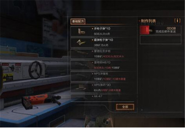 4.注意,通过制作站制作的子弹等道具是通过邮件发送到邮箱的。同时,子弹等消耗品将按会议比例征税。