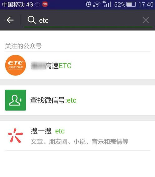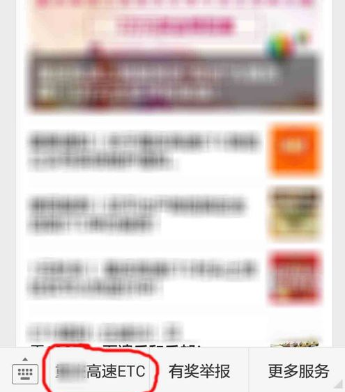 1.在微信上关注你所在地区的ETC微信官方账号,然后点击进入微信官方账号。