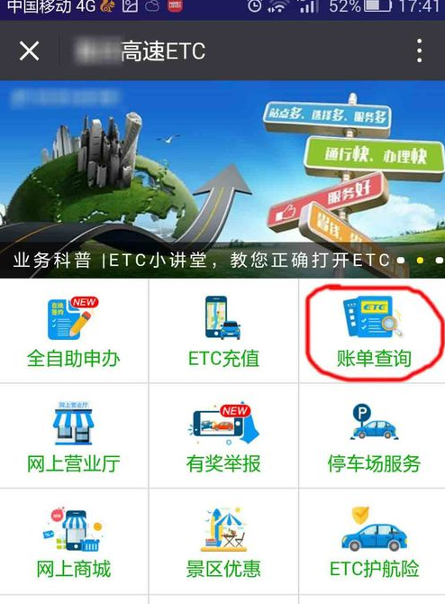 2.进入微信官方账号后,在页面左下方找到【XX高速公路ETC】,点击进入,如图。