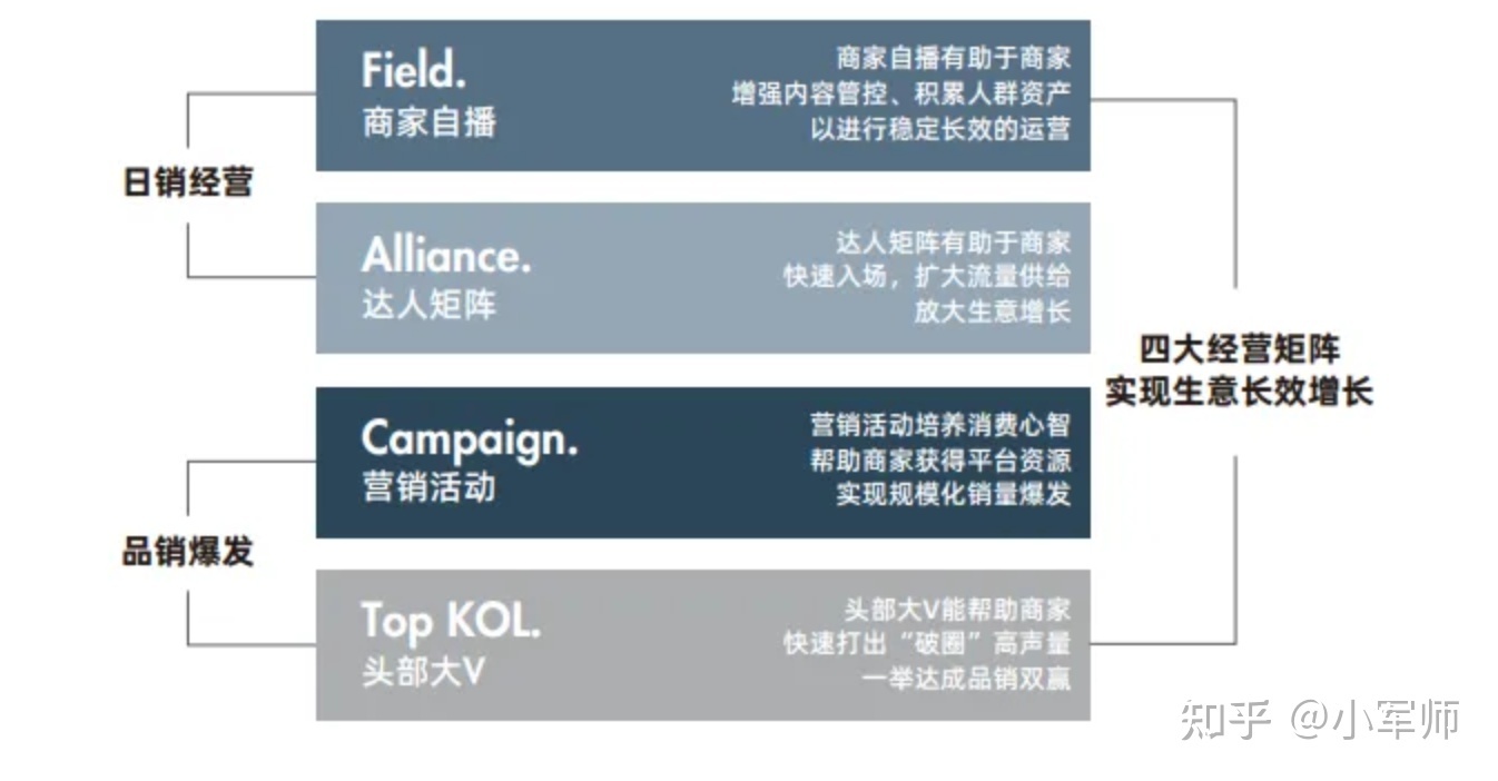 1。商家自播(场):作为商家日常运营中的自有阵地,有助于流量的积累和沉淀,便于长期运营。Field:“自有阵地”,运营好商家自身的经营阵地是基础。