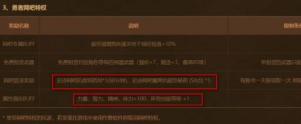 特权4属性强化BUFF(力量,智力,精神,体力+100,所有技能等级+1)