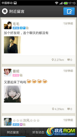 3.此时会显示附近Momo用户的个人动态,然后点击右上角的“编辑”按钮