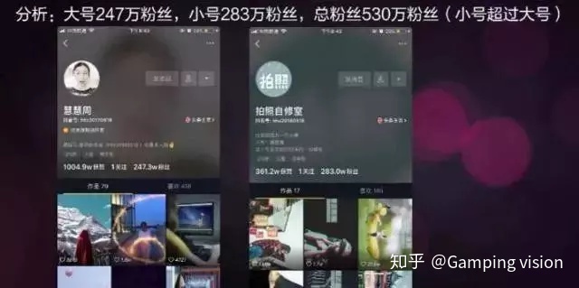 起初模仿“黑脸V”,做了一个叫做“慧慧周”的大号,以技术流的创意表现为内容,涨粉到近250万。后续又开启小号,青出于蓝而胜于蓝,粉丝超越大号。