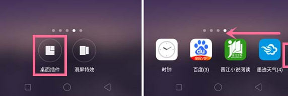 第二步:点击【桌面插件】进入,可以看到很多插件,向左滑动“”图标,还可以看到其他插件。