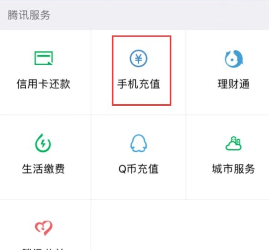 3.进入钱包页面,选择“手机充值”,进入手机充值页面,点击右下角的“更多服务”。
