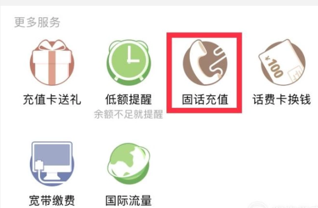 4.在这个页面上,我们找到“固定电话充值”并点击进入。