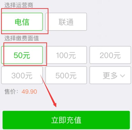 6.在对话框中输入要充值的座机号码,选择运营商为您的手机号码充值以及您要充值的金额,然后点击“立即充值”进入下一页面。